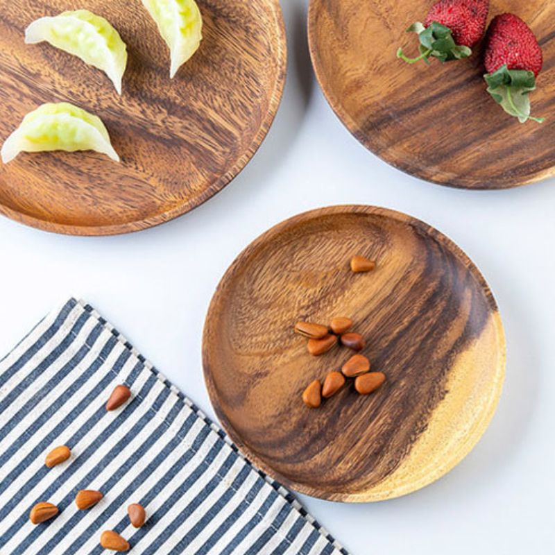 Disse bambus middagsplatene har et naturlig treverksdesign, og tilbyr en miljøvennlig og holdbar løsning for hverdagsmiddager. De runde platene er lette, ubrytbare og perfekte for servering av måltider, snacks eller som hjemmedekor. Trygge for direkte kontakt med mat, disse platene er ideelle for både uformelle og formelle settinger.
